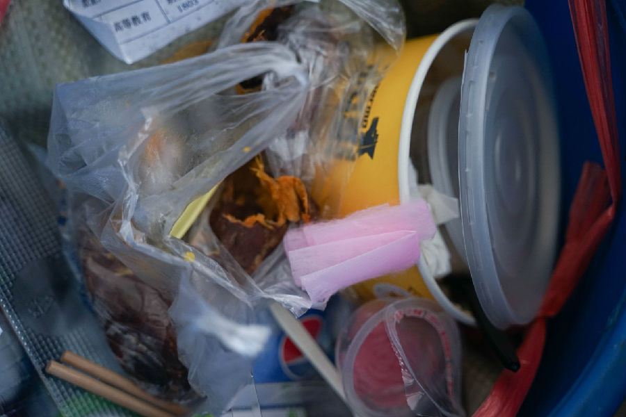 B去走廊上找垃圾分类桶