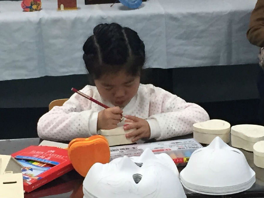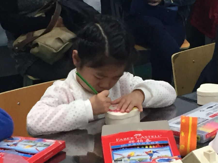 在老师和爷爷的帮助下,小朋友在慢慢完成自己的作品。小朋友,↖(^ω^)↗加油。